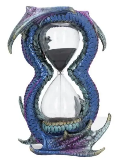 Dragons Countdown 22.5cm. This piece would take pride of place in any mystic home. Formed from the intertwined bodies of two Dragons, this timer is filled with black sand. Cast in the finest resin before being lovingly hand-painted, this enchanting piece would look great in anyone's Fantasy collection.