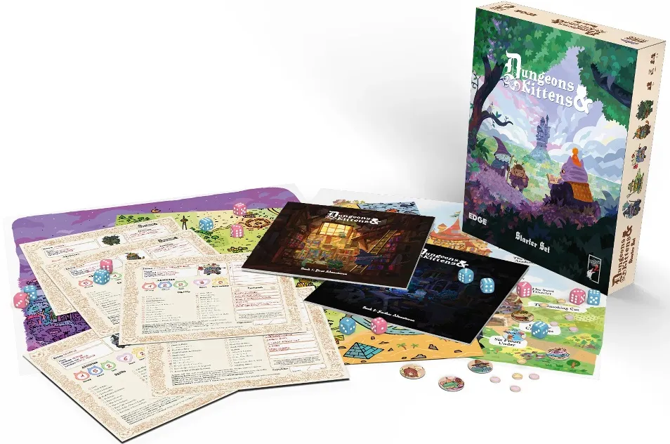Dungeons and Kittens is a roleplaying game for the whole family. It has all the classic ingredients for a great RPG (exploring, encounters, intrigue, magic, etc.) and relates to subjects that are very relevant to the world today (respect for nature, respect for oneself and others, differences, freedom, belonging, non-violence, tolerance, and the need to all co-exist peacefully). This Starter Set contains all you need to get started on your journey through this fantastic universe: learn the rules and away you go!