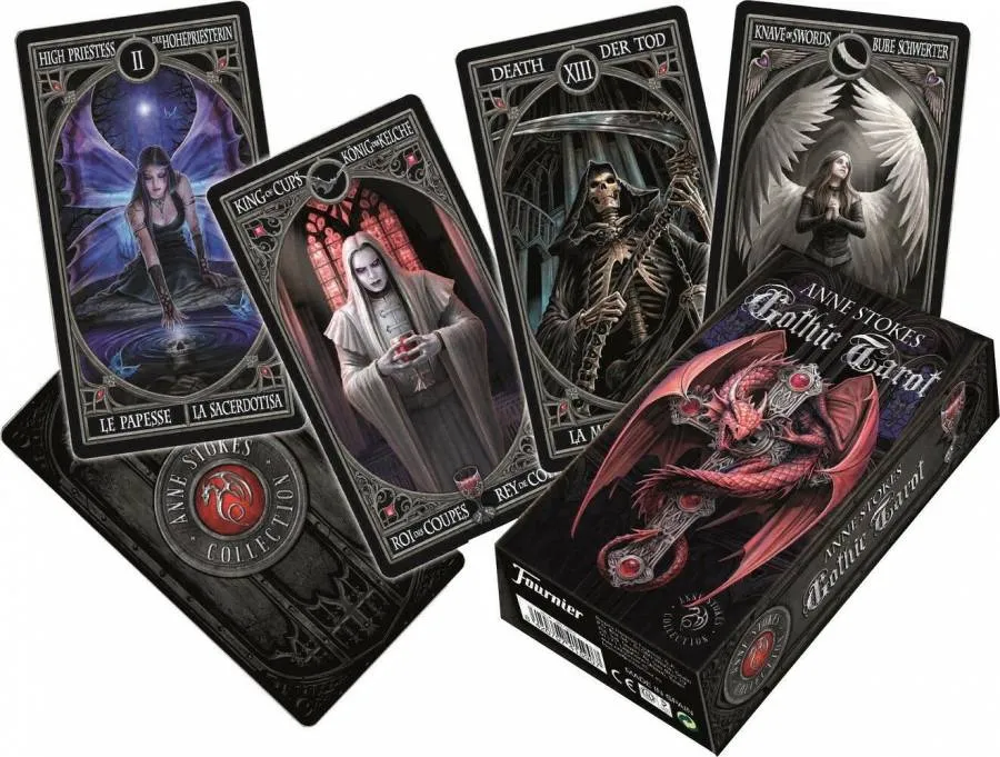 Find your fortune in the Dark Realm with these Gothic Tarot Cards, from the mind of world-renowned and Fantasy artist, Anne Stokes. There are 78 fantastically detailed cards, each showing a different character, from Skulls to Dragons, Dark Angels to Gothic Beauties. With a detailed instruction leaflet showing how to perform basic and advanced readings, this tarot deck is fantastic for beginners and adepts alike.