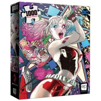 Hey Puddin’, take a swing at this 1,000 piece “Die Laughing” jigsaw puzzle capturing retro-style DC villainess Harley Quinn in fine detail and true form, from the stickers on her mallet to her pink pom-pom laces. Made in the USA and quality-checked for fans to piece together this Bird of Prey with clean edges and zero dust.