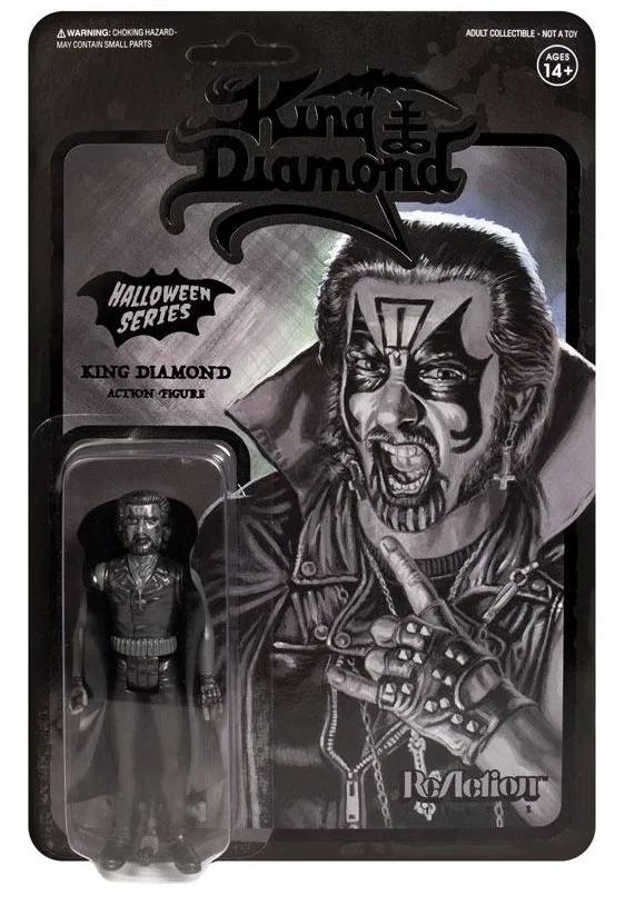 NONE MORE BLACK! The official Super7 x King Diamond alliance continues with the Black-On-Black Metal King Diamond 3.75" ReAction Figure!