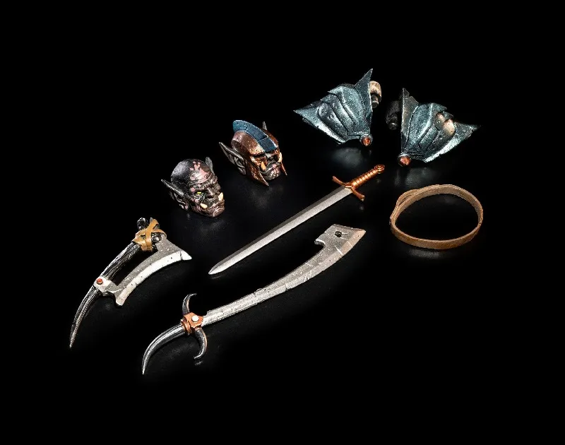 Gorthokk is a colossus from the Mythic Legions universe , known for his brute strength and intimidating appearance. As his miniature shows, his muscular body is entirely covered in segmented armor, featuring fine engravings and geometric decorations. The imposing helmet, with its articulated visor and angular horns, accentuates his menacing presence. His massive shoulder guards and detailed gauntlets highlight the meticulous sculpting.