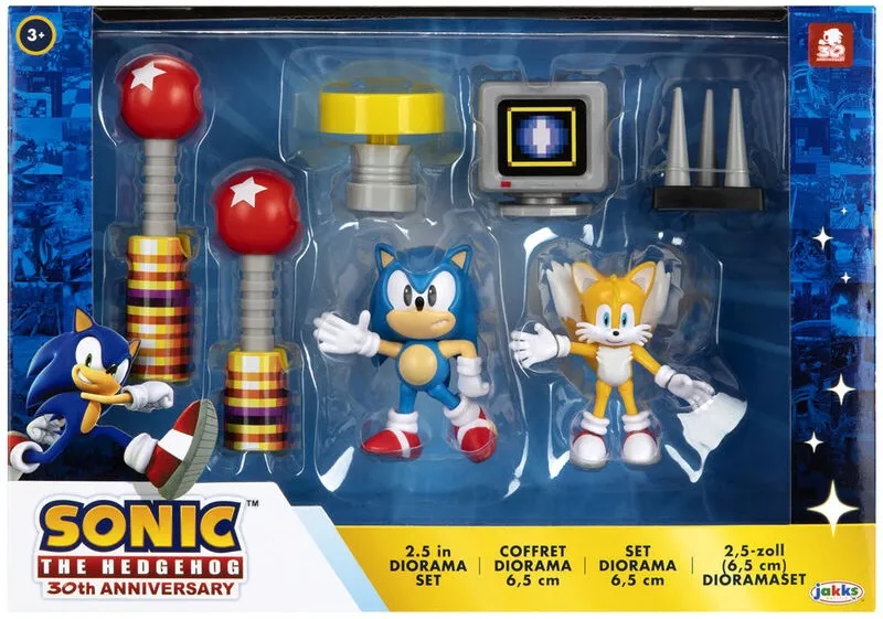 Figure size: 6cm. Complete diorama figures to recreate the epic battles of the Sonic video games. Sonic the Hedgehog is one of the world's most iconic video game characters. Together with his friends Tails, Knuckles and Amy, Sonic races around the planet to fight injustice and defeat his arch-nemesis, the evil Dr. Eggman.