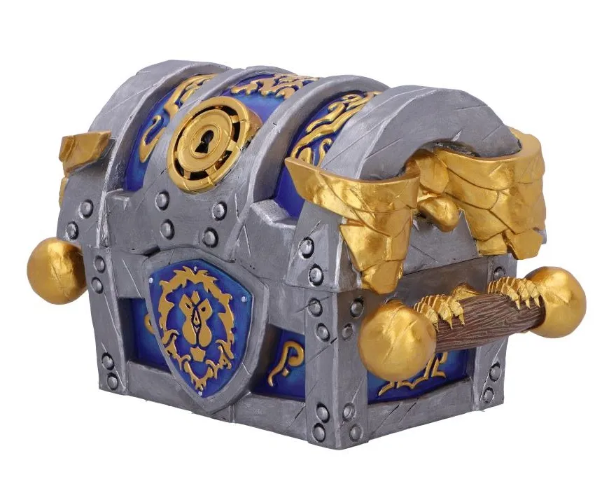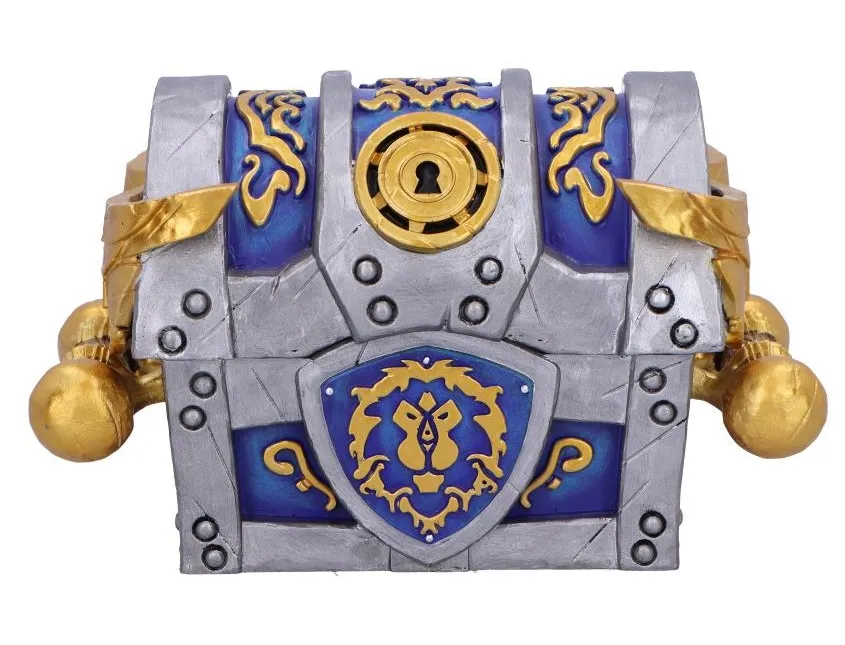 A collectible storage chest inspired by the noble Alliance faction from World of Warcraft, designed to resemble a treasure chest from Azeroth.