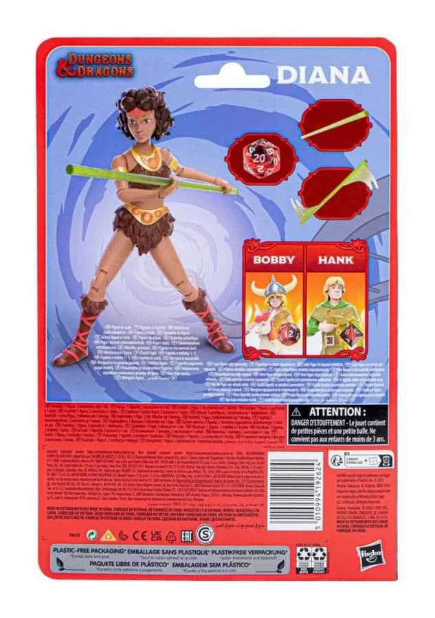 Fear not, Ranger! This Cartoon Classic Diana action figures comes with all the accessories she needs to battle the worst monsters in the realm of Dungeons & Dragons. But wait, there's more! Diana also comes with a d20 that's exclusive to this Cartoon Classics set. With packaging inspired by the original cartoon artwork, this collectible figure will look great on your shelf, in or out of the box.