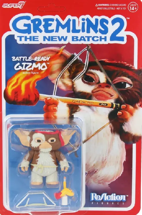 The new 3.75” scale, articulated battle-ready Gizmo ReAction Figure, inspired by the 1990 film Gremlins 2: The New Batch, brings the movie’s hero to life like never before. With film-accurate details, Gizmo is ready to defend himself—and your collection—with his pencil and paperclip bow and arrow accessory! Packaged on a full color blistered cardback, this figure is the perfect addition to any Gremlins fan’s shelf. Collect yours today!