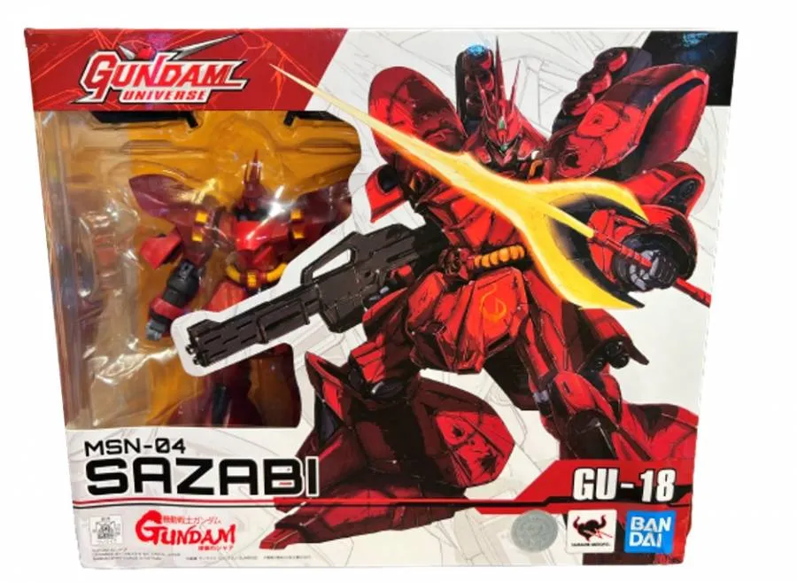 From "Mobile Suit Gundam: Char's Counterattack," the distinctive crimson Sazabi joins Gundam Universe! Set Contents: Main body, Beam rifle, Beam Tomahawk, Optional right hand