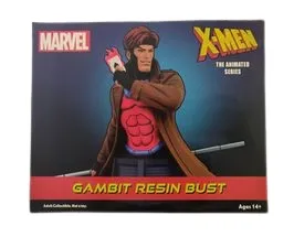 A Diamond Select Toys release! Based on the original X-Men animation from the 1990s, this approximately 6-inch bust of Gambit is inspired by his appearance in the series, wielding his staff and playing cards. Featuring a cartoon-accurate paint scheme and line-perfect sculpting, this bust is limited to only 3,000 pieces and comes packaged with a certificate of authenticity in a full-color box.