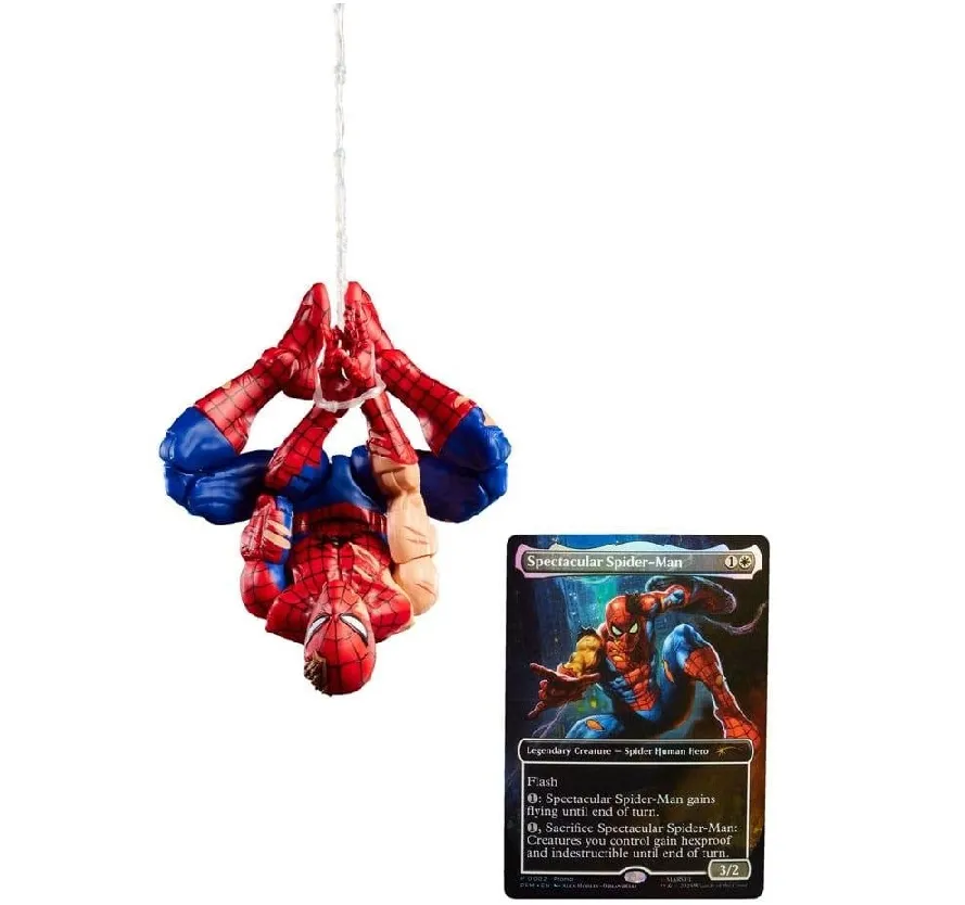 Bring the excitement and magic of the Marvel Universe to your collection with the Hasbro Marvel Legends Series Magic: The Gathering Battle-Damaged Spider-Man figure and enhance your Magic deck with a playable card! Detailed to resemble the character's appearance in Marvel's Spider-Man comics, this 6-inch-scale Spider-Man collectible figure is fully articulated with posable head, arms and legs. This Marvel figure set includes 7 accessories, including an alternate maskless head, 2 thwip arms, 2 wall-climbing arms, web line and web shield; plus an exclusive Magic: The Gathering - Marvel's Spider-Man shiny card to expand your Spider-hero collection! Hasbro's 6-inch-scale Marvel action figures are perfect for posing and displaying in fan collections. Reimagine scenes inspired by Spider-Man comics in your library with Marvel Legends action figures.