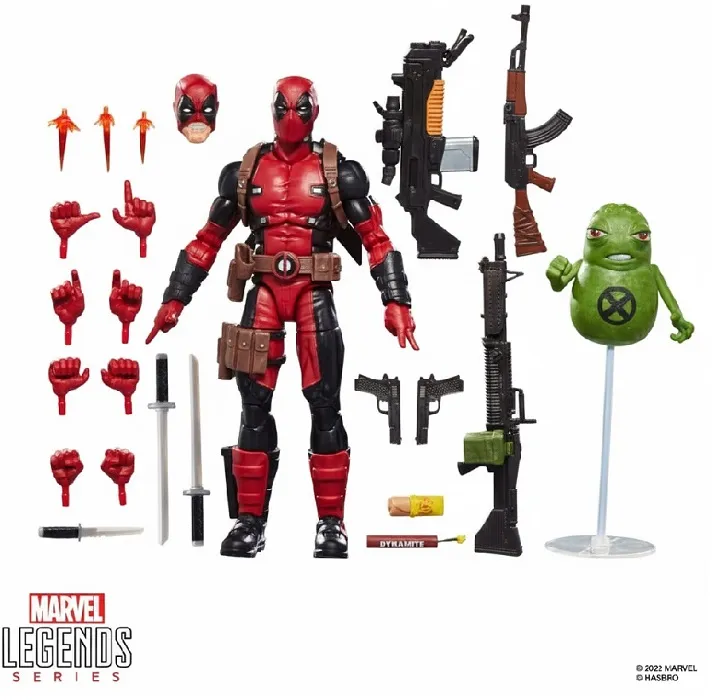 Bring the excitement and wonder of the Marvel Universe to your collection with the Hasbro Marvel Legends Maximum Series Deadpool figure! This collectible figure is detailed to look like the character from Marvel's Deadpool, X-Men, and X-Force comics. 6-inch scale Marvel figures are fully articulated with poseable head, arms, and legs. Maximum Series action figure set is bursting with 24 accessories, including: alternate head; 2 pointer hands; thumbs up, v fingers, 2 fists, 2 grip hands, knife, 2 swords, blaster, 3 blast effects, stick of dynamite, a chimichanga (for when you need a snack), and weapon accessories; plus that loveable spud Doop with a clear floating stand. Hasbro Marvel action figures' 6 inch scale make them great for posing and displaying in fans' collections. Reimagine fourth wall-breaking Deadpool comics-inspired scenes on your shelf with Marvel Legends action figures.