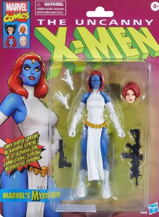 The Marvel action figure set includes 5 accessories, including 2 alternate hands, an alternate head that allows Mystique to transform into Jean Grey using her transformation abilities, and 2 weapon accessories.