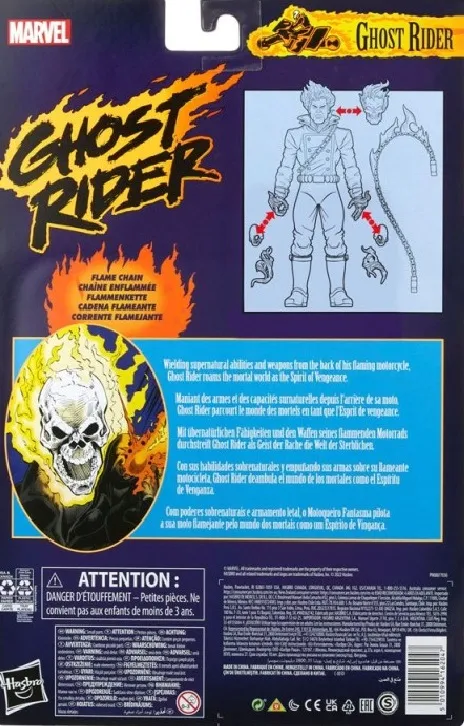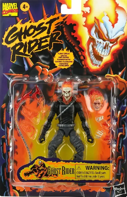 - Retro inspired packaging: This Ghost Rider figure comes in retro-style packaging to recreate the classic Marvel Legends releases!
