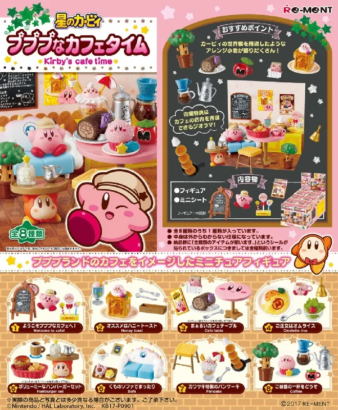 This set of miniature figures is themed around a cafe run by characters from "Kirby". Not only does it feature the main characters, but it also includes a variety of charming accessories and items from the sub-characters. The food details are meticulously crafted to look delicious.