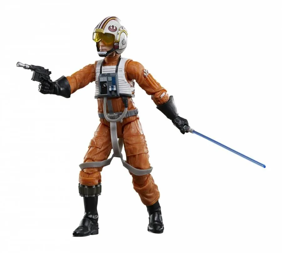 CHARACTER-INSPIRED ACCESSORIES: This Luke Skywalker figure comes with a blaster accessory and a helmet