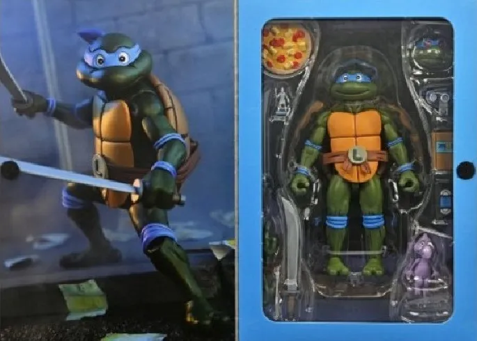 Based on the classic 1980s Teenage Mutant Ninja Turtles cartoon series! Leonardo leads and is getting the "Ultimate" treatment with this 7-inch scale action figure loaded with accessories. He includes an evil robot clone head from the episode "Combatland," plus a pepperoni & marshmallow pizza, and more episode-specific accessories! Comes in all-new Pizza Club VHS style collectible packaging.