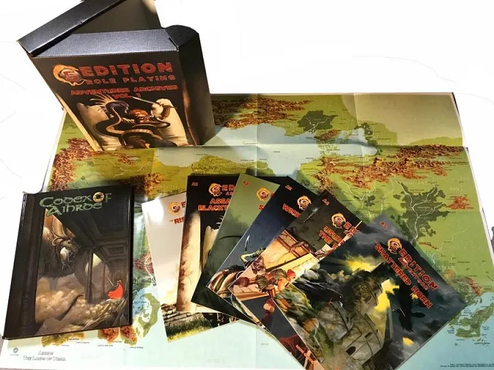This boxed collection includes 6 5th Edition Adventures and the Hardcover Codex of Aihrde world setting book and a full color, fold out world map. A 30% savings!