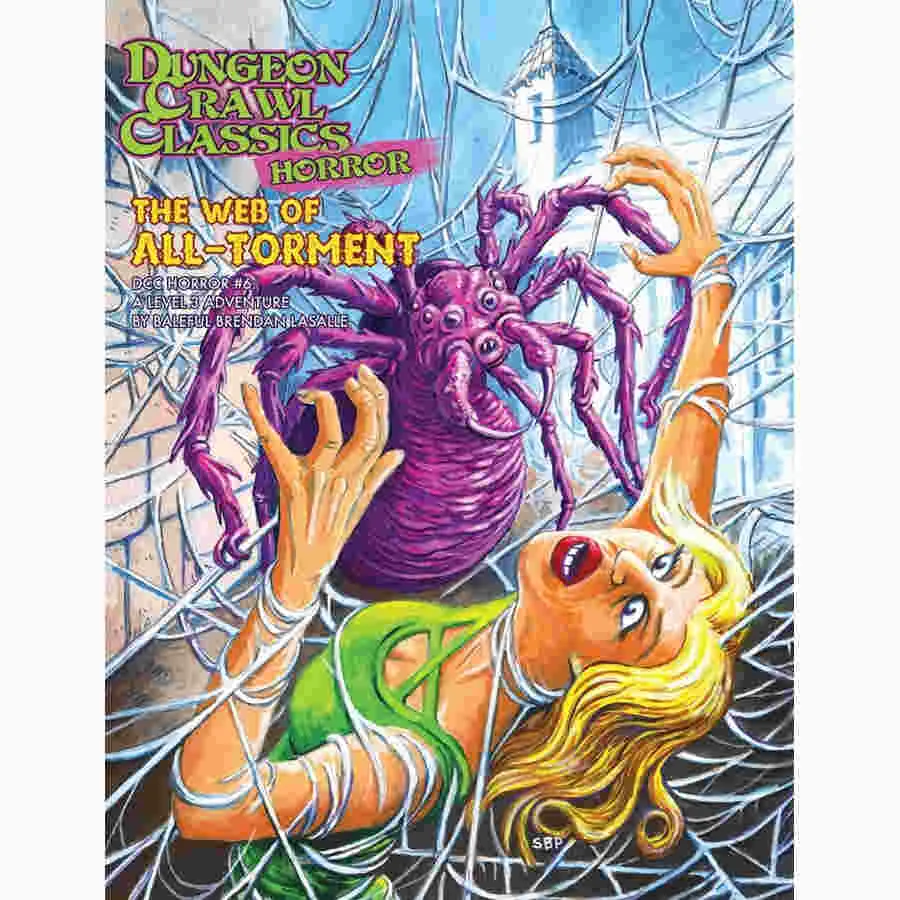 A level 3 DCC Horror adventure. A group of adventurers find the perfect place to retire: a sweet little inn in a quiet town. But is it what it seems? Lurking beneath the surface of this idyllic spot is a secret so evil as to defy mortal comprehension. This is the Web of All-Torment, the source of all the world's nightmares, and escaping may be the greatest challenge the adventurers have ever faced. This shadow realm is the domain of horrors whose seeming's can never be trusted, and even the imprisoned have become instruments of torture.