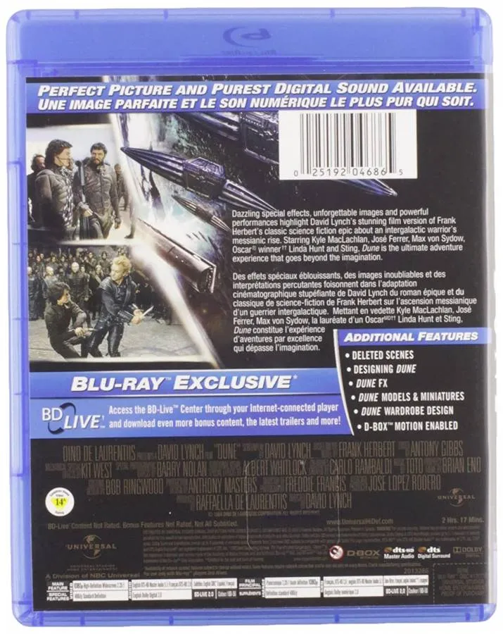 The long-awaited film version of Frank Herbert's classic science fiction epic, Dune, explodes on the screen with dazzling special effects, unforgettable images and powerful performances. The saga of intergalactic warrior Paul Atreides (Kyle MacLachlan) and his messianic rise to leadership features an all-star cast, including Jose Ferrer, Max Von Sydow, Linda Hunt and rock legend, Sting. This monumental Dino DeLaurentiis presentation is directed by David Lynch (The Elephant Man, Eraserhead), with photography by Freddie Francis, music by Toto, and incredible monster creation by E.T.'s Carlo Rambaldi. An unbelievable world beyond time and space, and experience the ultimate adventure that goes beyond the imagination.