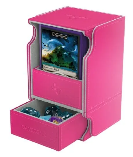 The convertible Watchtower combines deck box, accessories drawer and card holder in one elegant box. The card holder can keep up to 100 double-sleeved cards, protected by soft inner microfiber lining. The accessories drawer is perfect to house dice, tokens and other small items.