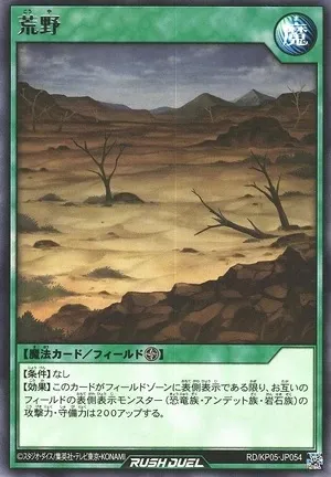 [Effect]: While this card is face-up in the Field Zone, all face-up monster (Dinosaur-Type/Zombie-Type/Rock-Type) gain 200 ATK and DEF.